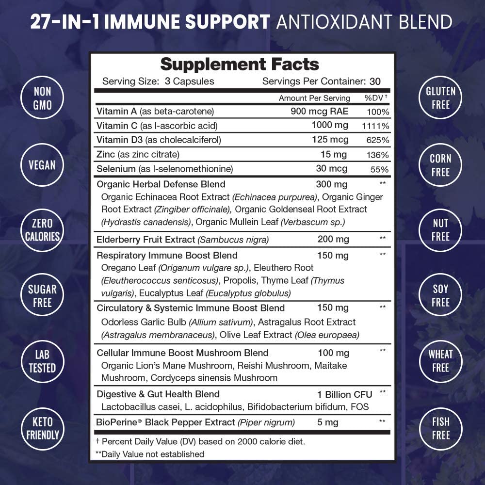 Per Serving: 300mg Organic Herbal Defense Blend