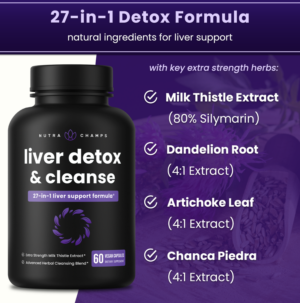 I love this product and here is why: I think one of the most important areas to care for in our bodies is the liver because it helps us with digestion, vitality and flushing out all the toxins that would otherwise create a multitude of health problems. From all the research that i've read i understood why the NutraChamps Liver Detox is the best product to do that since it contains a perfected formula of the most recommended herbs for cleansing and detoxification, including Milk Thistle Extract, Turmeric and Dandelion and also Quercetin and ALA which all of them are in top best ingredients with benefits for the entire body as anti-inflammatory, antioxidants, helping the immune system, the metabolism and so much more. Since using this product i've been feeling more energized, focused, all the processes in my body including digestion have performed better and the amazing fact is these also show on the outside by having clearer and more glowing skin since the nutrients are absorbed better and the toxins are properly removed. All the hundreds of functions that take place daily inside the body are each helped by these powerhouse substances filled with benefits. So i totally recommend this product because it's the best at cleaning and detoxing our liver which is a must-do in order to be filled with health and vitality !