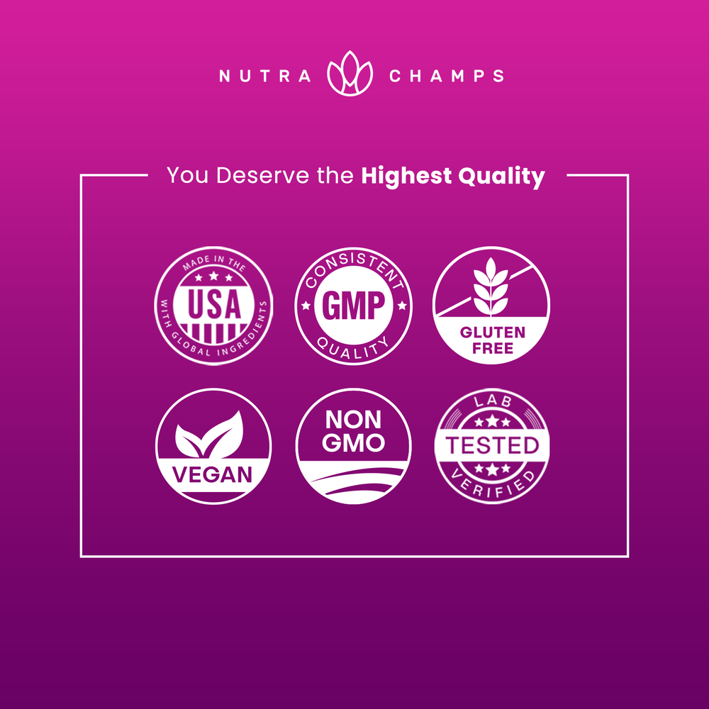 NutraChamps Resveratrol helps you maintain your youthful vigor and glow, adding “life to your years”. Customers report feelings of vitality, energy, and overall wellness.