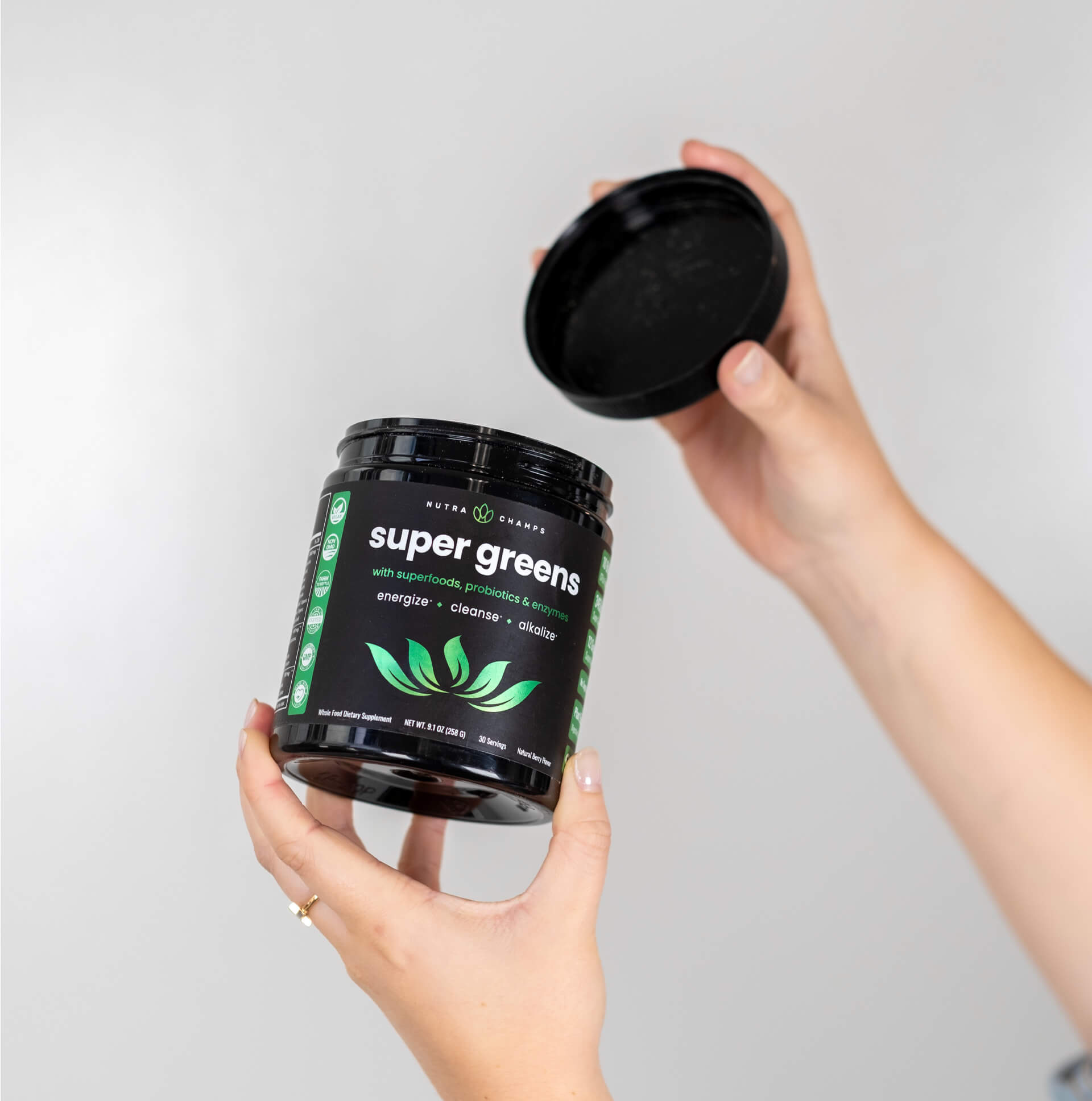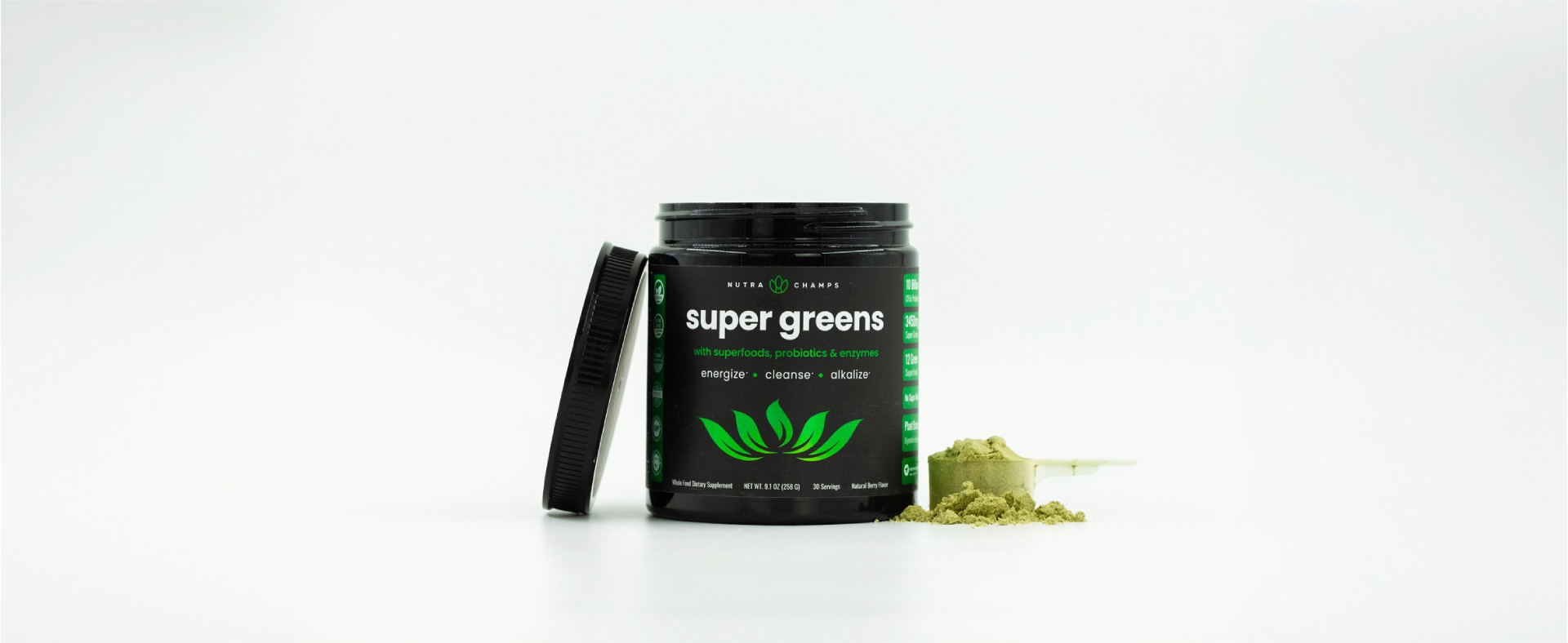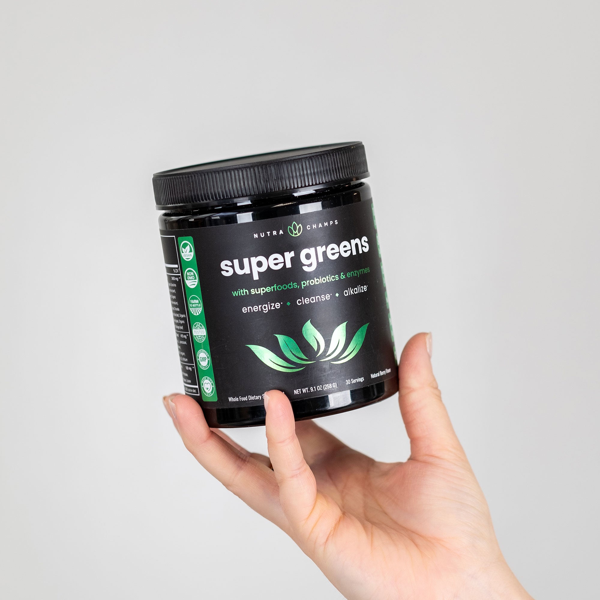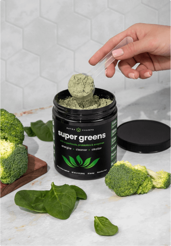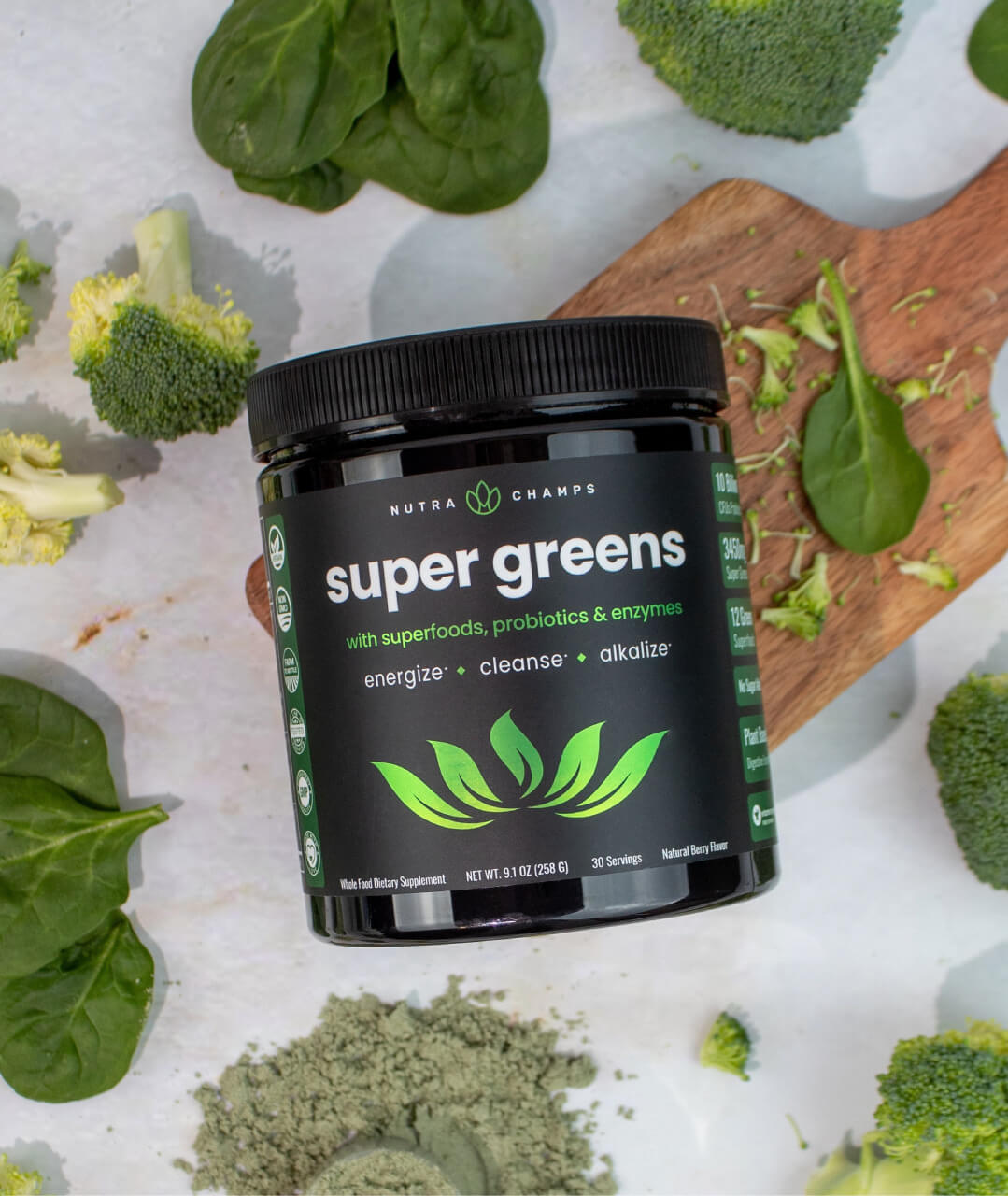 The team at NutraChamps recognizes that every individual has a unique health history and responds differently to various nutrients. Super Greens was created as a comprehensive formula to provide daily support to areas of the body where you need it most. Many of our users report experiencing sustained energy, reduced food cravings, and improved gut health after taking Super Greens for only a few weeks.