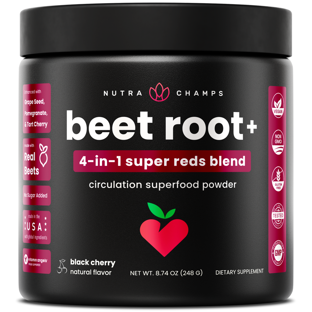 Beet Root+, previously called Beet Heat, has a 4-in-1 powerhouse blend that comes fortified with Super Reds, allowing blood to circulate more freely through your body. Get the benefits of beets, with a delicious black cherry taste for easy drinking.
