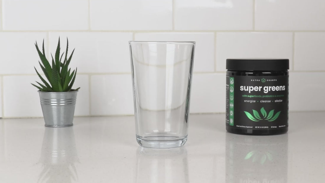 Mix one scoop of Super Greens with 8-10 oz of cold water