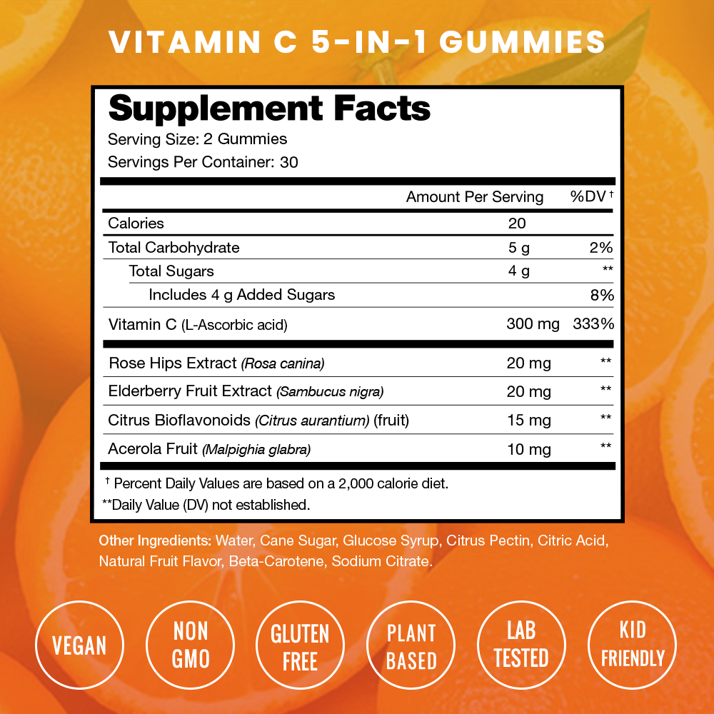 Per Serving: 300mg Vitamin C (as L-Ascorbic Acid)